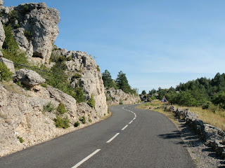But after several kms itbstarted to get green again. Then I arrived at the "Col du vente". From there I had a fantastic view over what lies ahead. And then m descent started from 700m down to 200m in one long joyfull piece. However, see rhe puctures yourself. (It's many this time; -) ).